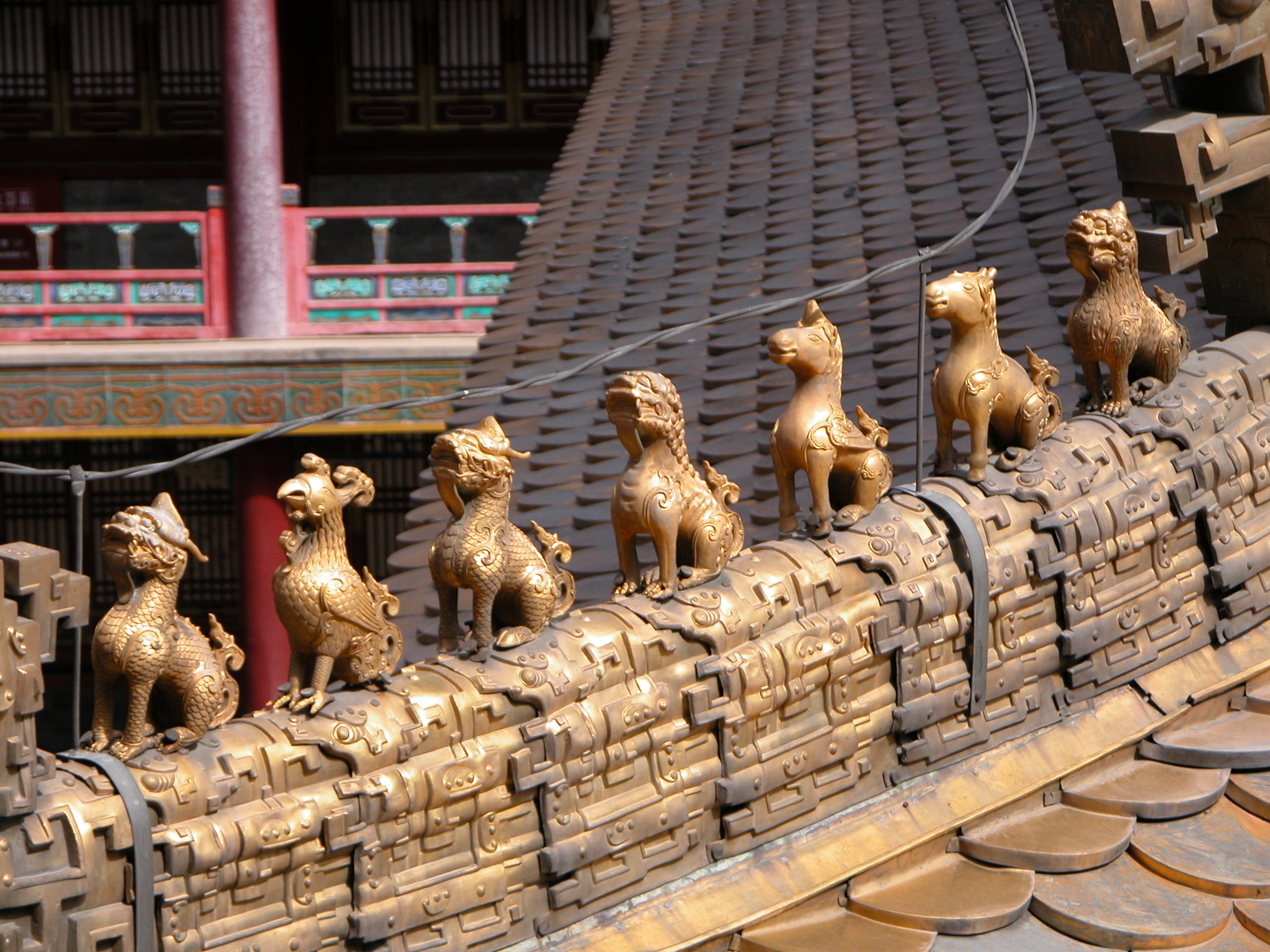 beeldjes op dak van tempel